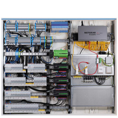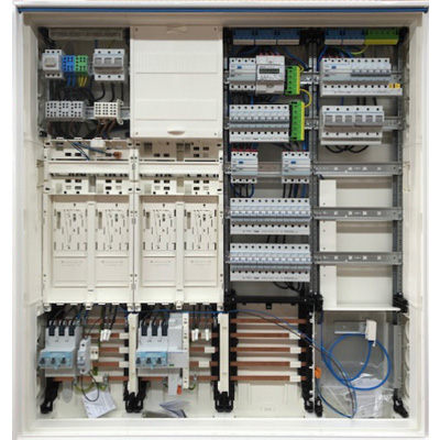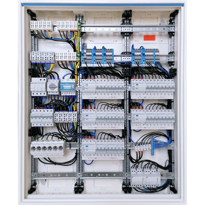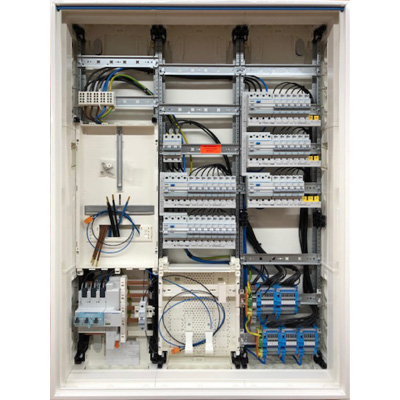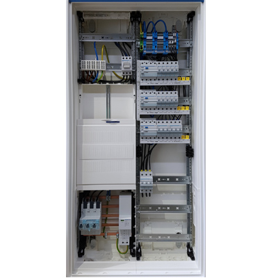 Neben der Verdrahtung im netzseitigen Anschlussraum wie z.B. SLS-Schalter, Kombiableiter, erfolgt auch die Montage und Verdrahtung im Verteilerbereich bis 63A